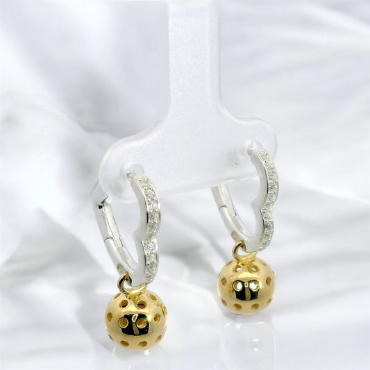 Currently Out of StockPickleball Huggie Dangle Earrings in Sterling Silver with Gold Ball