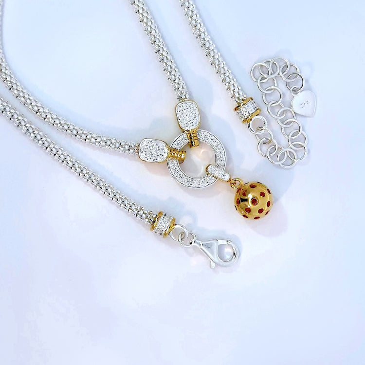 Our exquisite pickleball necklaces are designed for the discerning pickleball enthusiast who seeks to make a statement both on and off the court. These necklaces are a blend of sophistication and athleticism. Whether you're showcasing your passion for pickleball during a match or adding a touch of elegance to your everyday ensemble, our Sterling Silver and 18K Gold Vermeil necklaces are the perfect accessory. Elevate your style and showcase your love for the game with these timeless pieces that resonate with the power and finesse of pickleball.